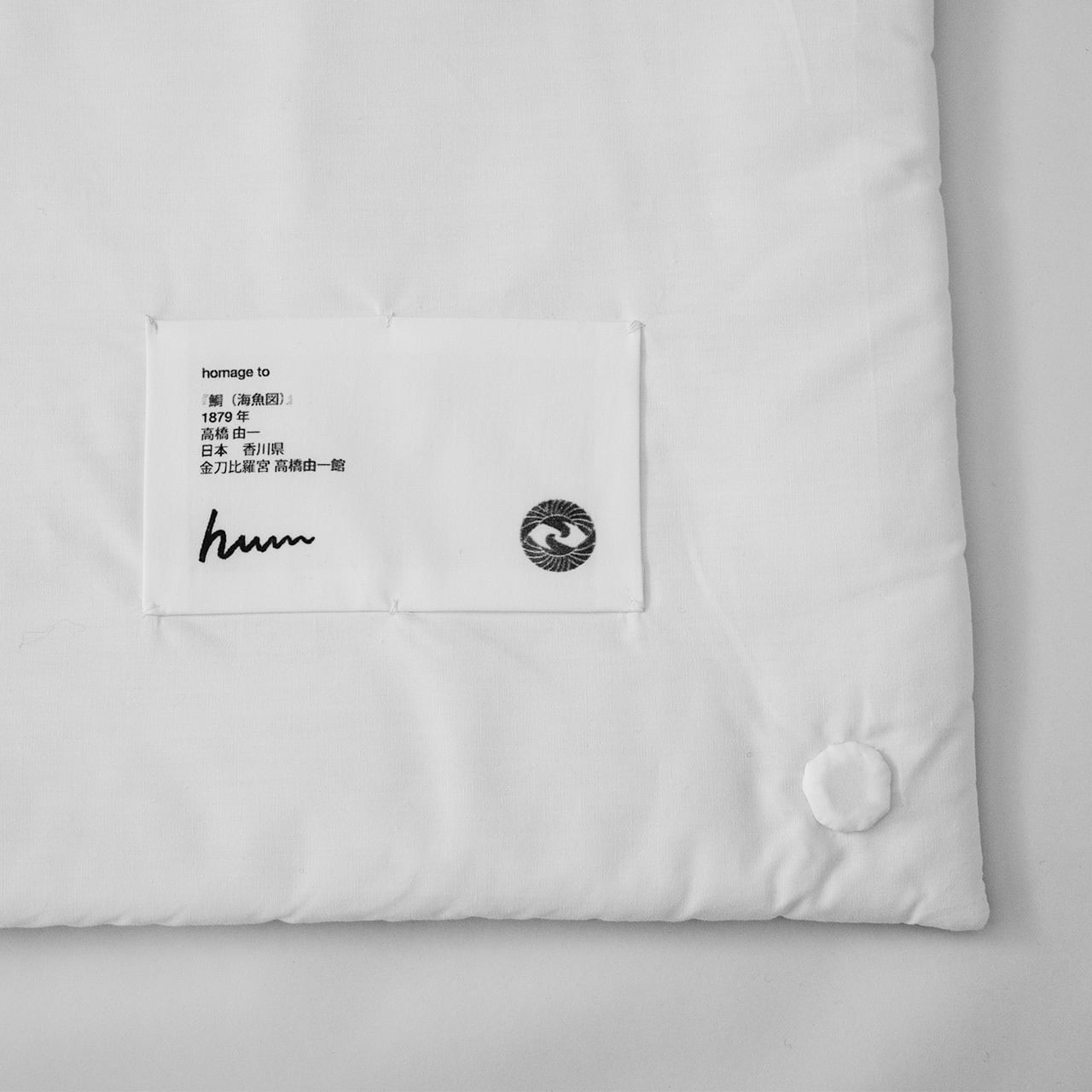日本洋画の先駆者である、高橋由一の絵画作品『鯛(海魚図)』をオマージュし、ソフトスカルプチャーで表現しました。それを写真撮影後に布印刷し、布製の額装を施しました。