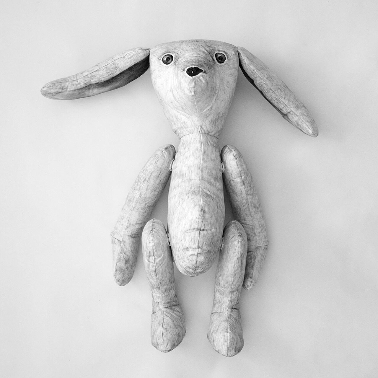 うさぎをモチーフにしたぬいぐるみです。少し不安定ですが、座らせることはできます。