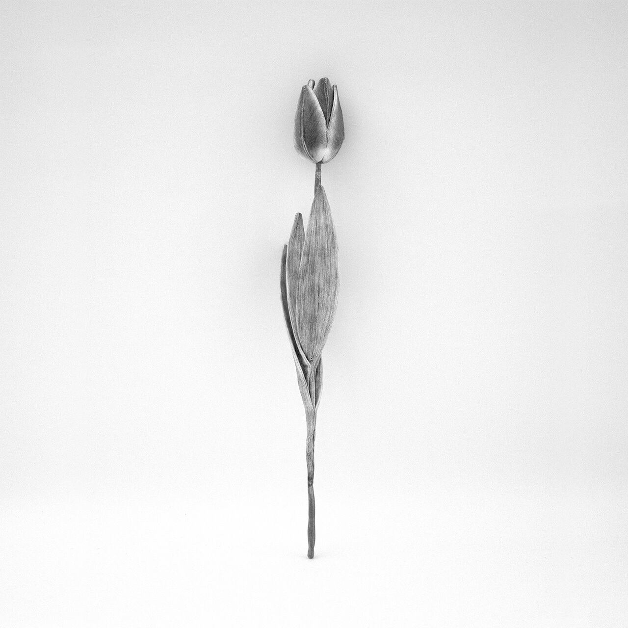 布でできたフラワーベースに布でできたチューリップを5本活けました。