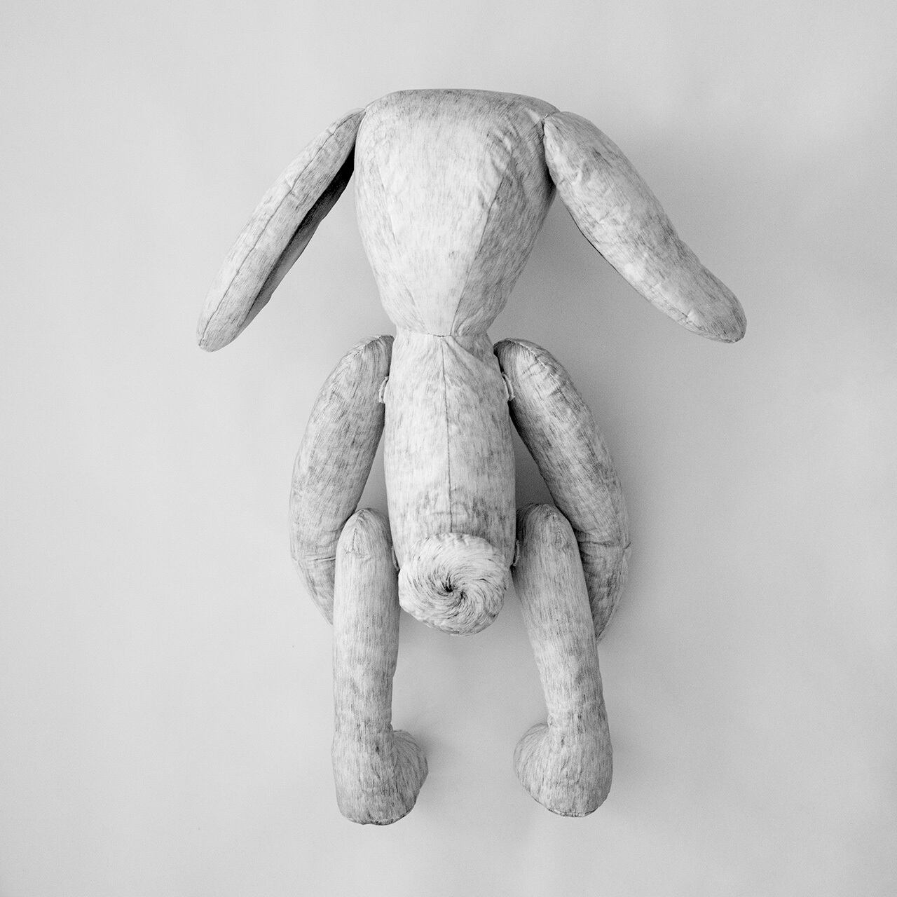 うさぎをモチーフにしたぬいぐるみです。少し不安定ですが、座らせることはできます。